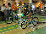 WITH BIKE ENTRY のページ から事前登録していただくと、サイクルショー本館内の当ブースまで、愛車と共に入場することができます。カリカリにチューンされたスーパースプリントマシンで、存分に戦ってください。また、愛車を持込んだ皆様を対象とする公式戦を、会期中の前半と後半に2回催す予定です。この公式戦の決勝トーナメントは、2005東京国際自転車展の公式イベントプログラムとして、ご来場の多くの方々にご覧いただきます。最高レベルのマシンでエキサイティングなレースを演出してください。
